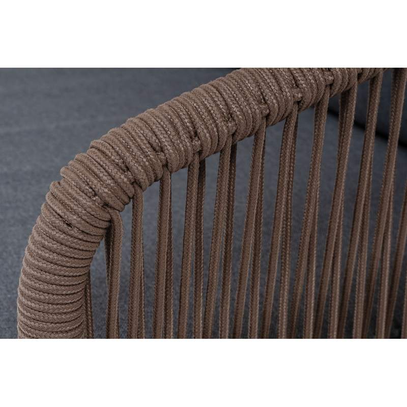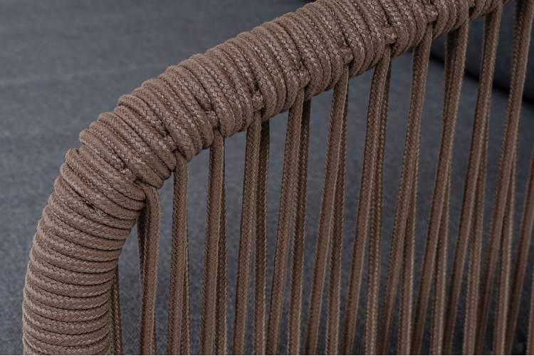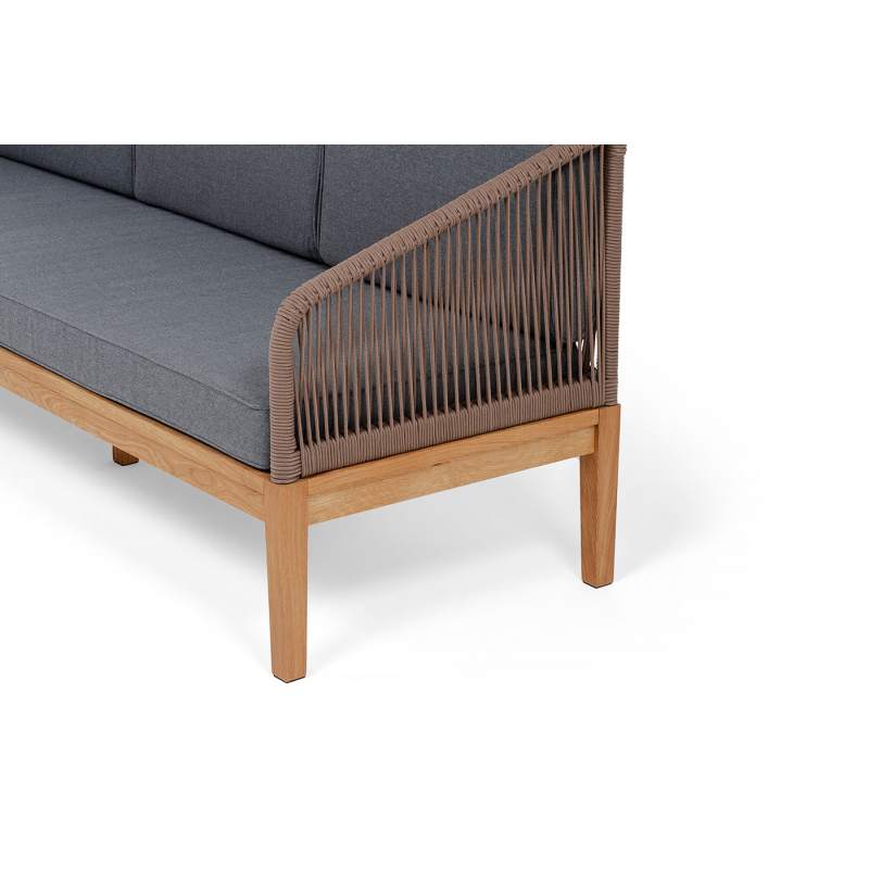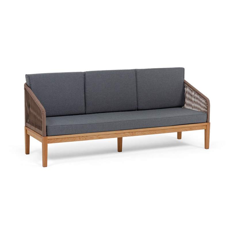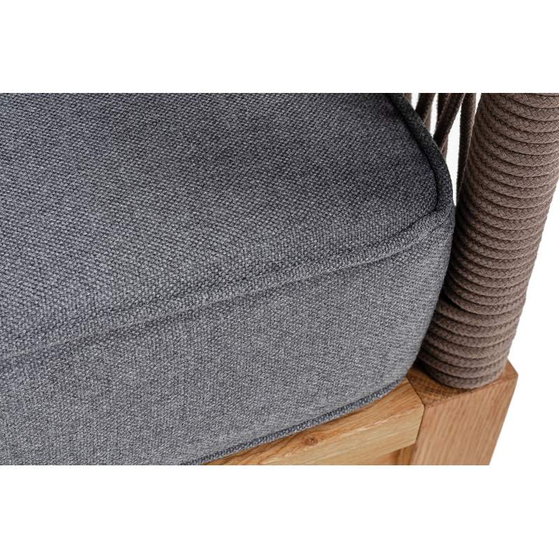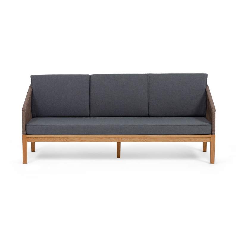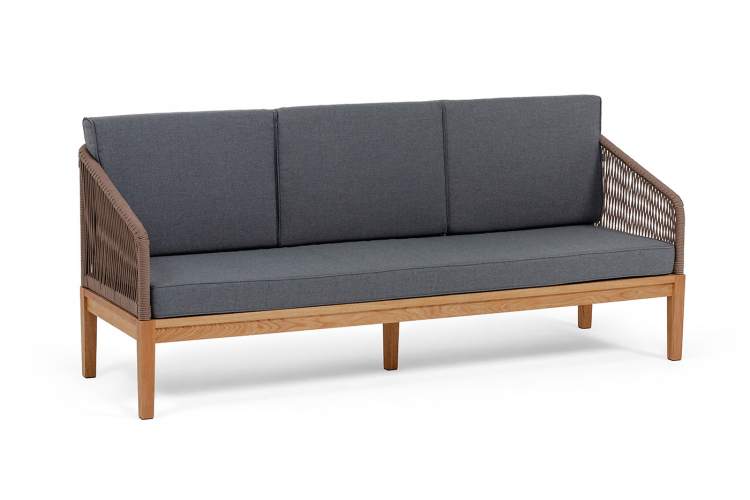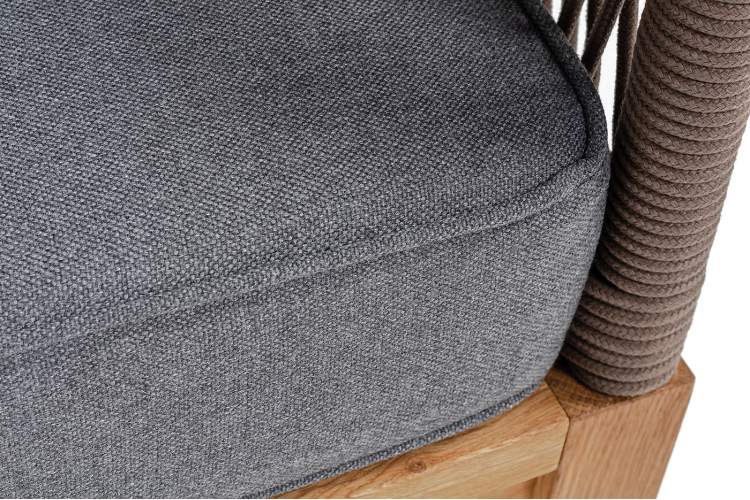 "Канны" диван 3-местный плетеный из роупа, основание дуб, роуп коричневый круглый, ткань темно-серая 027