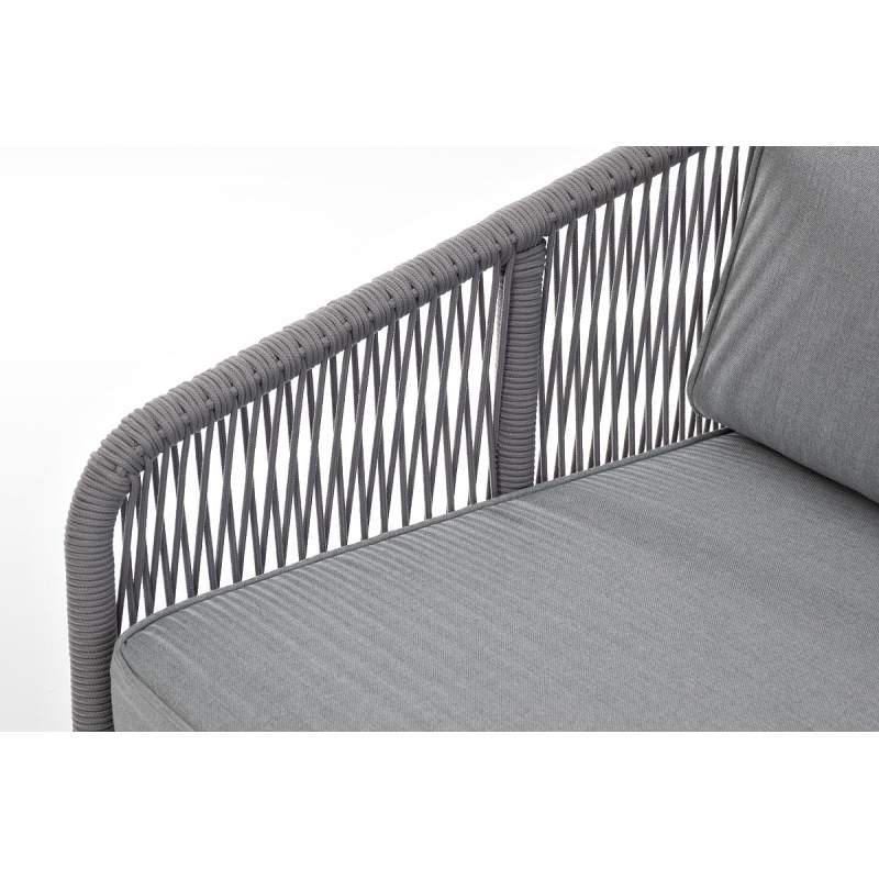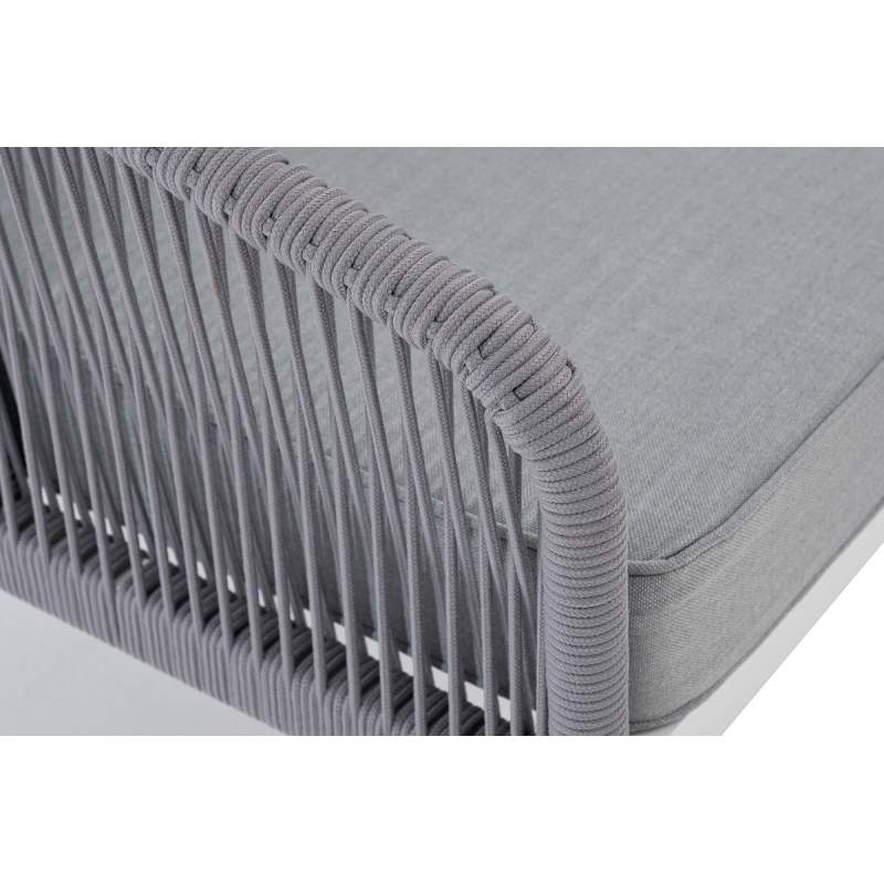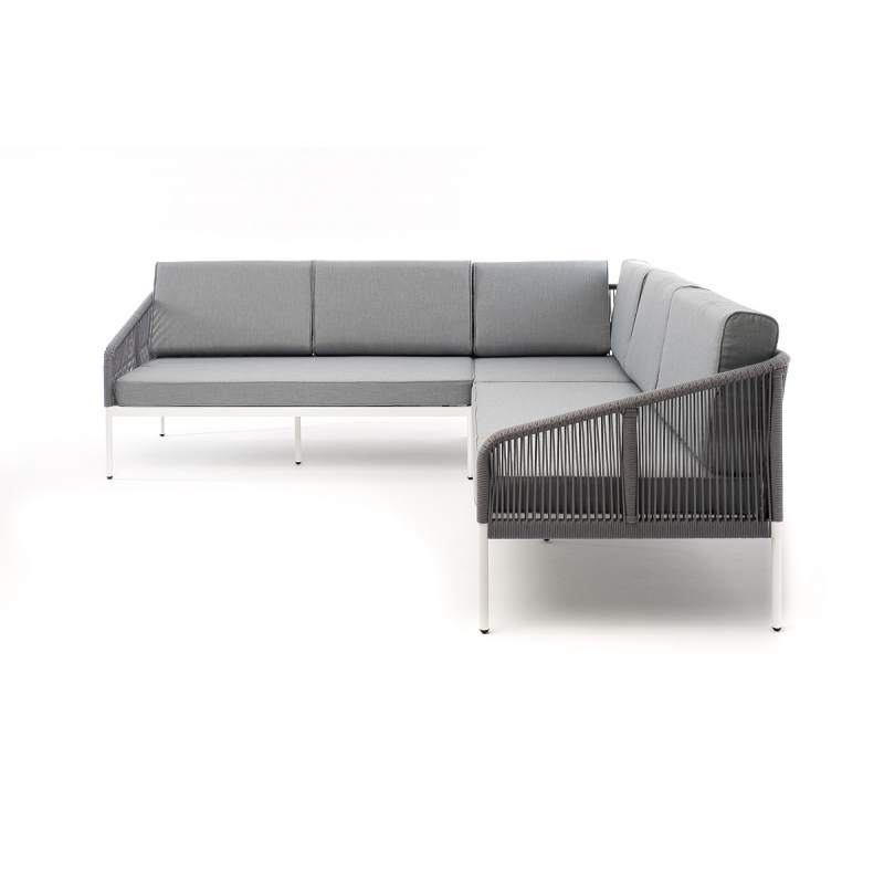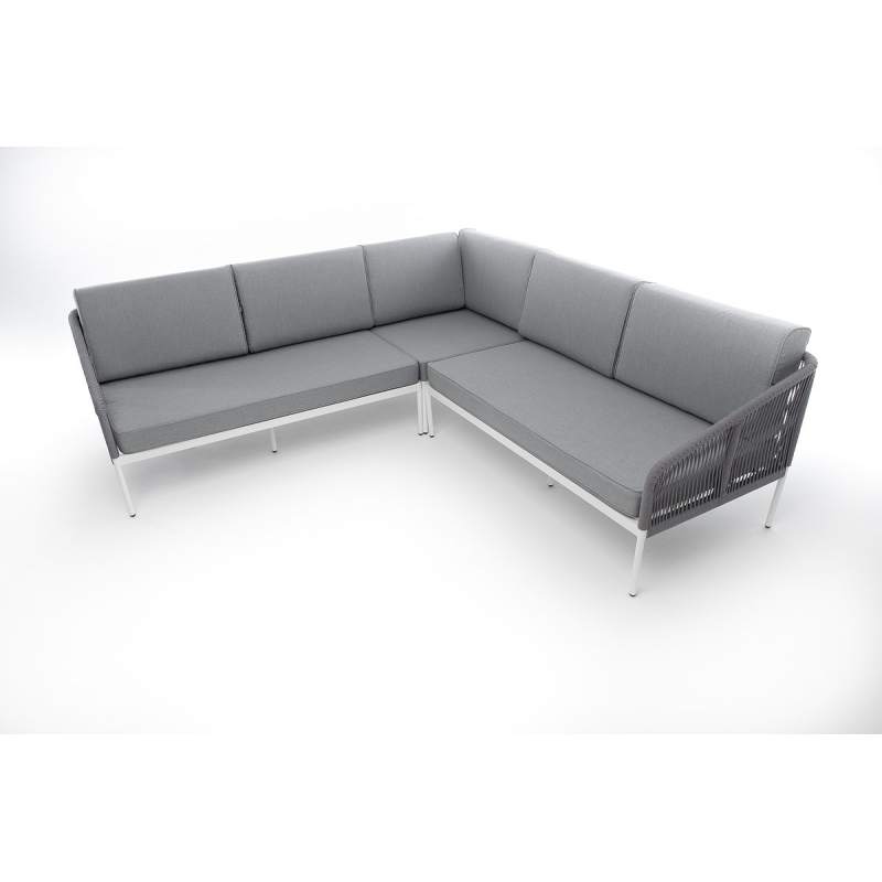 "Канны" диван модульный плетеный из роупа, каркас алюминий белый, роуп светло-серый круглый, ткань светло-серая