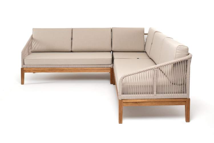 Модульный диван «Канны». Состоит из трех модулей: - правый модуль - 1480×850×790 мм. - левый модуль - 1480×850×790 мм. - угловой модуль - 850×850×790 мм. Боковины каркаса вручную оплетены роупом - эластичными синтетическими лентами, изготовленными из высокопрочных полиэфирных волокон. Цвет оплетки - бежевый. Основание дуб. Подушки состоят из наполнителя и съёмных чехлов. Материал - 100% полиэстер, плотностью 300гр/м2. "Канны" левый модуль плетеный из роупа, основание дуб, роуп бежевый круглый, ткань бежевая 15052 1шт. 1 480Х850Х790, "Канны" угловой модуль плетеный из роупа, основание дуб, роуп бежевый круглый, ткань бежевая 15052 1шт. 850Х850Х790, "Канны" правый модуль плетеный из роупа, основание дуб, роуп бежевый круглый, ткань бежевая 15052 1шт. 1 480Х850Х790,