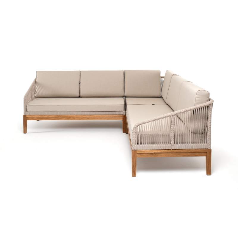 "Канны" диван модульный плетеный из роупа, основание дуб, роуп бежевый круглый, ткань бежевая 15052