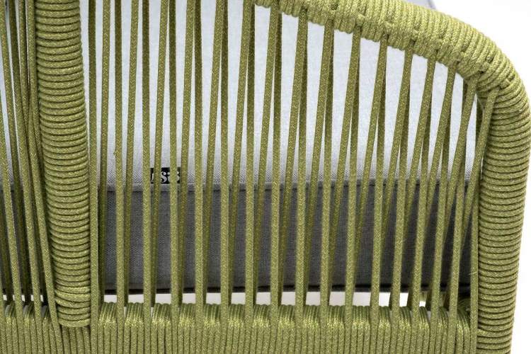 "Канны" кресло плетеное из роупа, каркас алюминий светло-серый (RAL7035) муар, роуп салатовый меланж круглый, ткань светло-серая