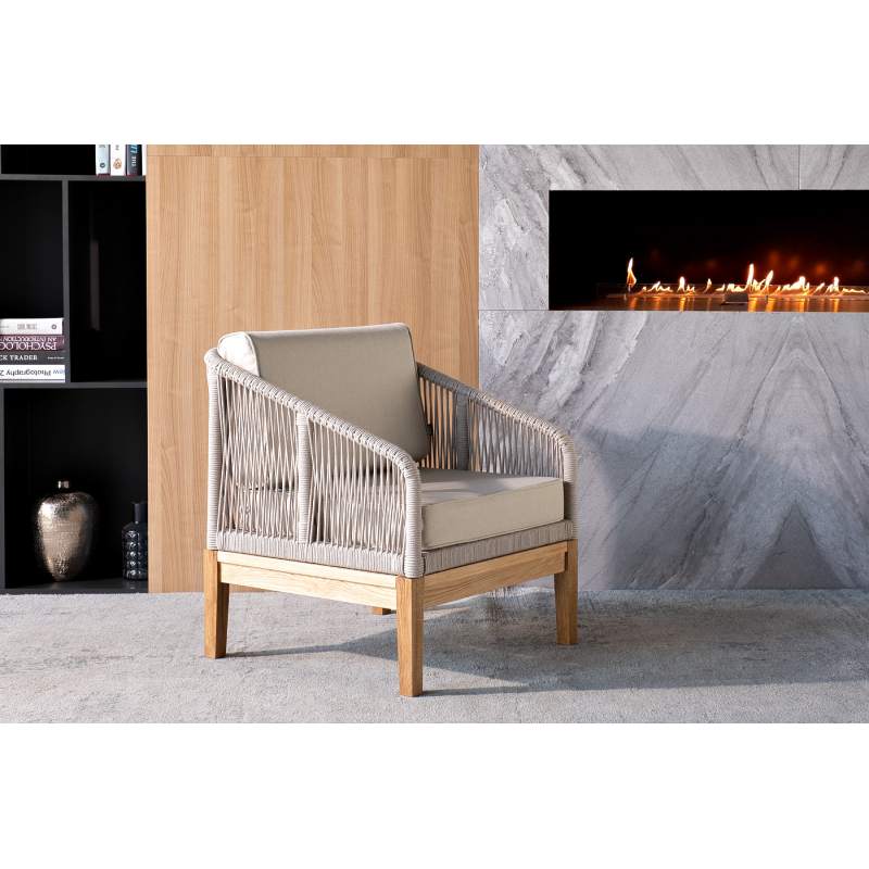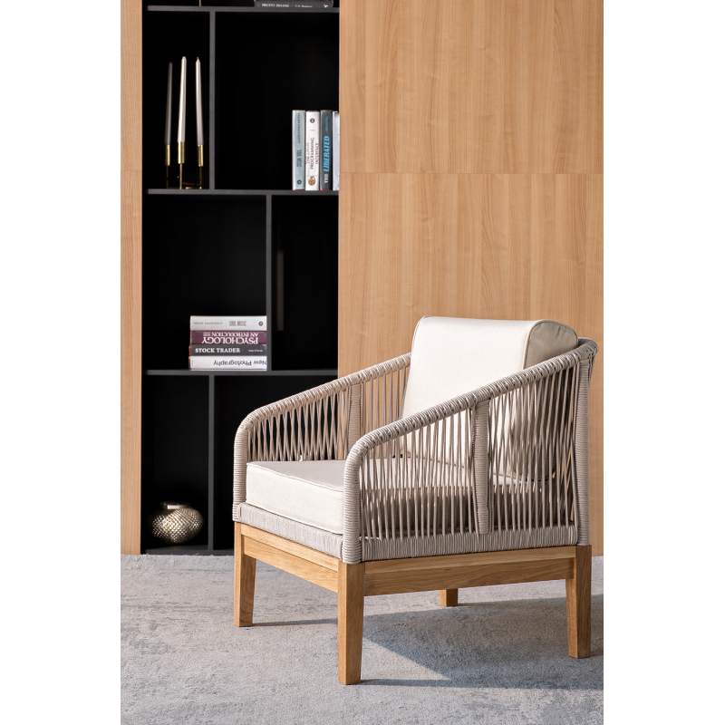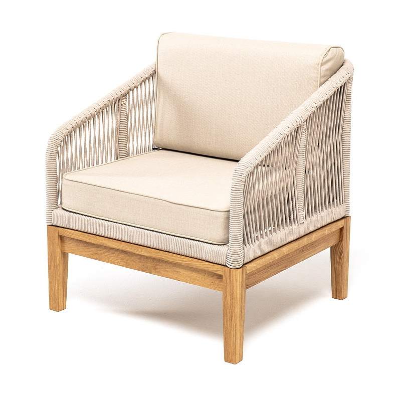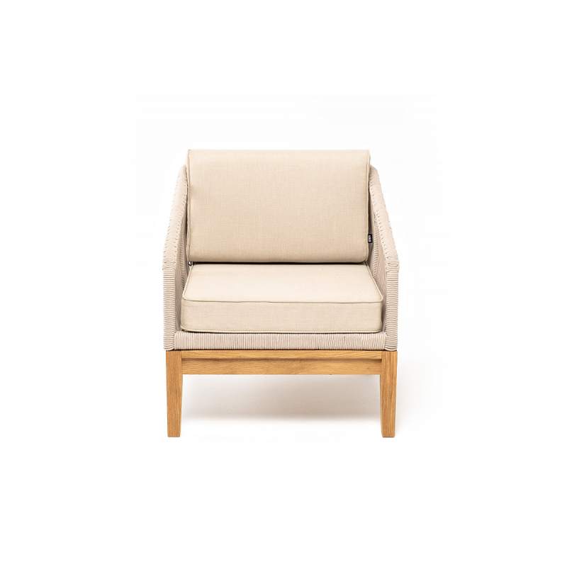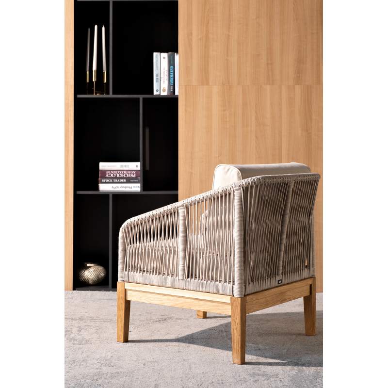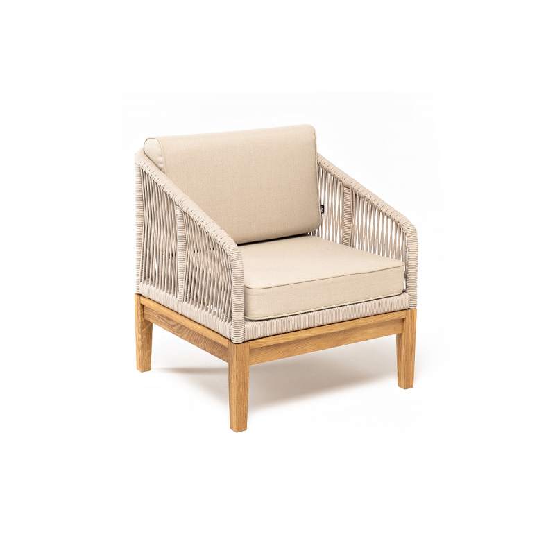"Канны" кресло плетеное из роупа, основание дуб, роуп бежевый круглый, ткань бежевая 15052