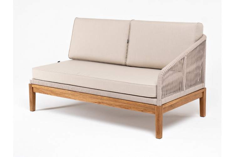 "Канны" левый модуль плетеный из роупа, основание дуб, роуп бежевый круглый, ткань бежевая 15052