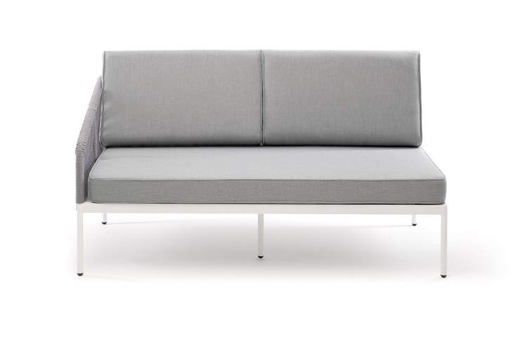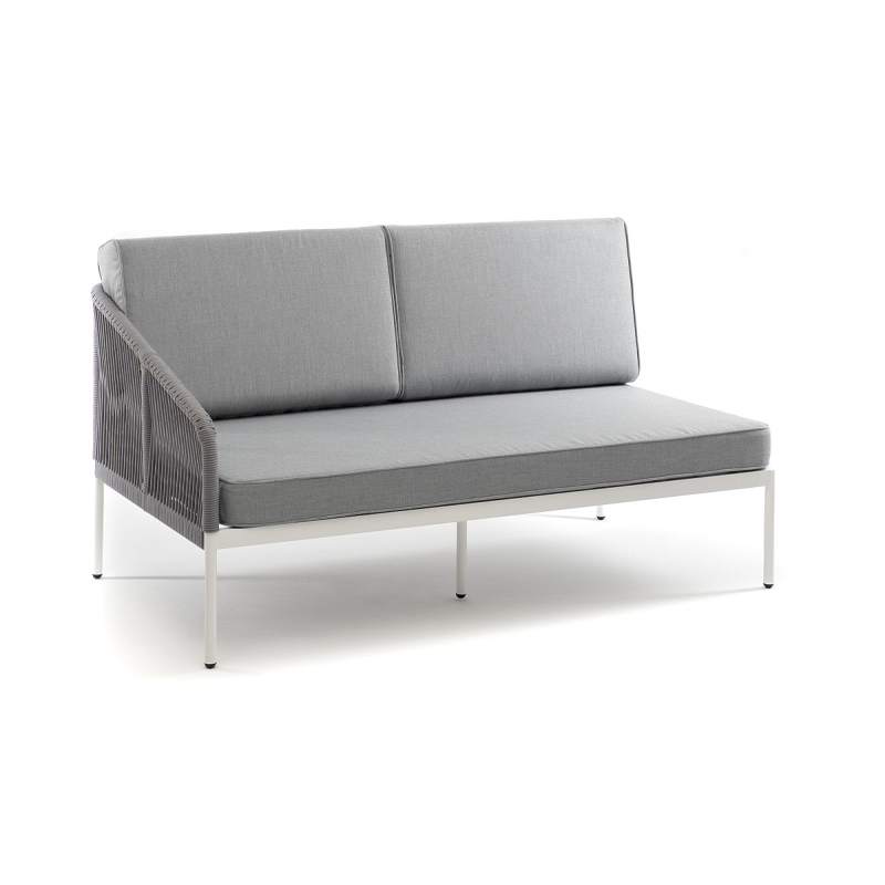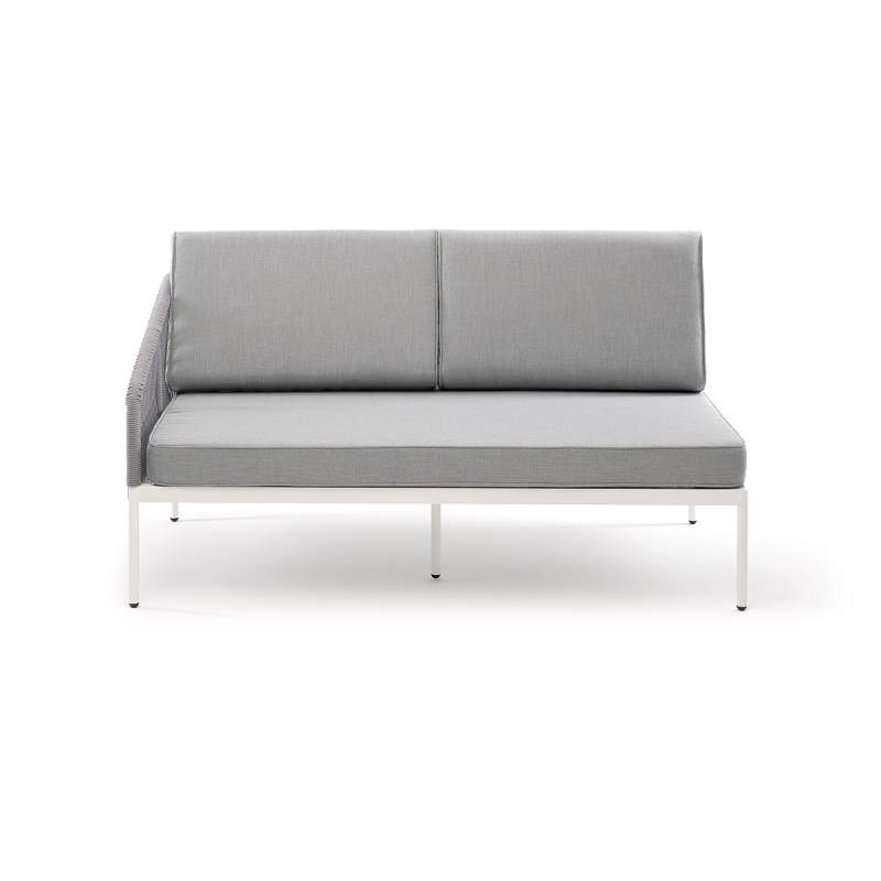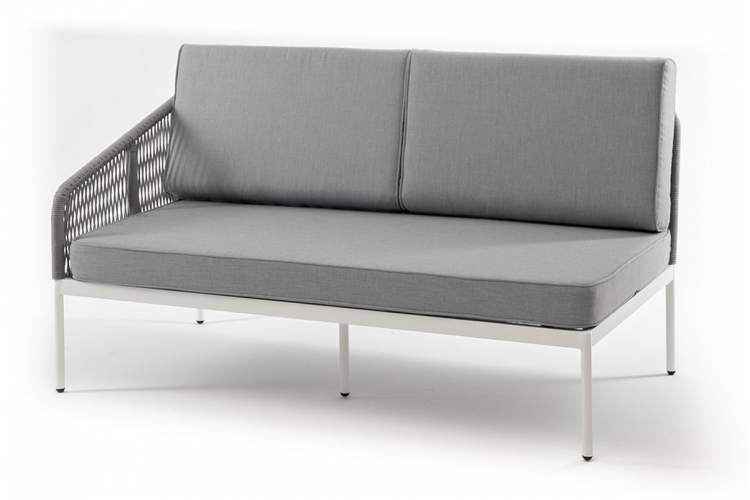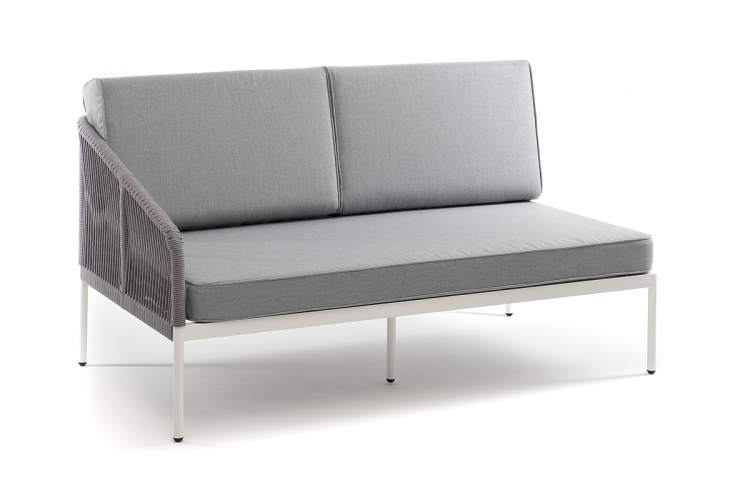"Канны" правый модуль плетеный из роупа, каркас алюминий светло-серый (RAL7035) шагрень, роуп серый круглый, ткань серая 017