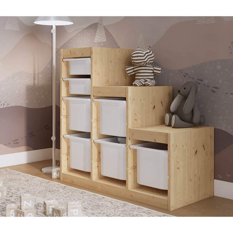 Сочетая в себе функциональность и стиль, стеллаж обеспечивает удобный доступ к вещам, которые важны вашему ребенку.