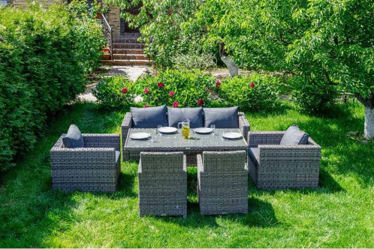 Комплект KARL PLUS состоит из обеденного комплекта KARL в сером цвете и двух обеденных кресел FIONA Комплект мебели KARL с обеденным столом в сером цвете - это элегантное и удобное решение для вашей столовой или гостиной. Он состоит из трехместного дивана, двух кресел и обеденного стола, изготовленных из искусственного ротанга на металлическом каркасе. Обеденное кресло FIONA станет отличным дополнением комплекта KARL, плетение товаров сделано в одном цвете, что позволяет комбинировать их между собой. Комплект мебели KARL PLUS в сером цвете является практичным и стильным выбором для вашего дома. Он прекрасно подойдет для проведения ужинов с семьей и друзьями, создавая уютную и комфортную атмосферу. Сочетается с комплектами FIONA, GENRY, GRAND VICKY, ZORRO, ZOYA, KARL, VIOLETTA в сером цвете.