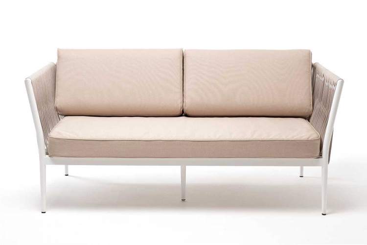 "Касабланка" диван 2-местный плетеный из роупа, каркас алюминий светло-серый (RAL7035) муар, роуп серо-коричневый 23мм, ткань бежевая 052