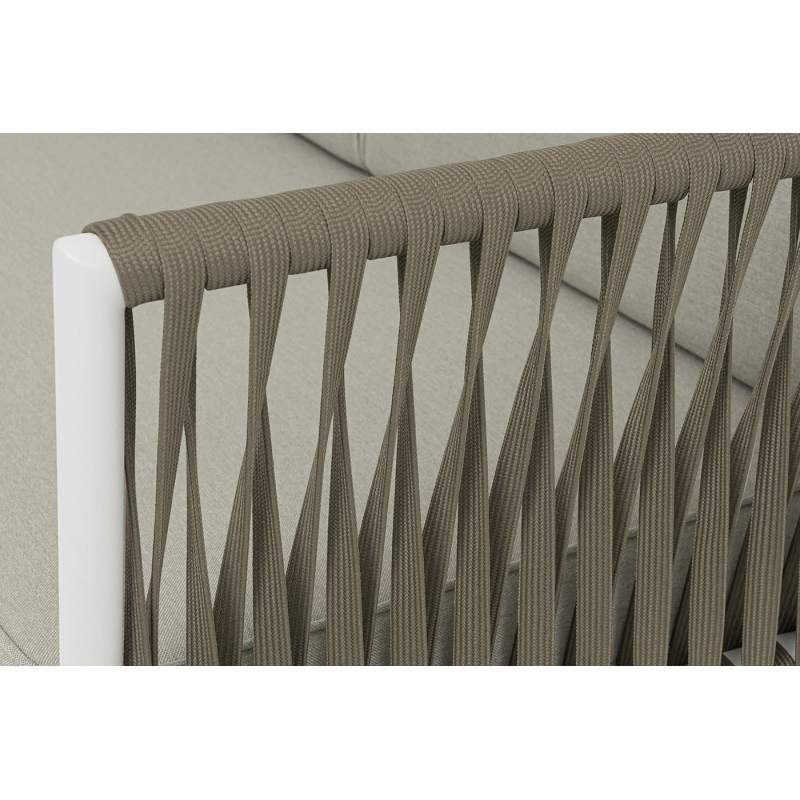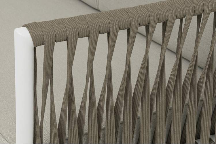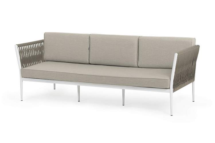 "Касабланка" диван 3-местный плетеный из роупа, каркас алюминий светло-серый (RAL7035) муар, роуп серо-коричневый 23мм, ткань бежевая 15052