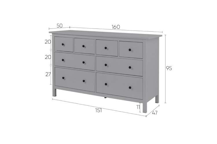 Комод 8 ящиков КЫМОР / ХЕМНЭС серый, ИКЕА