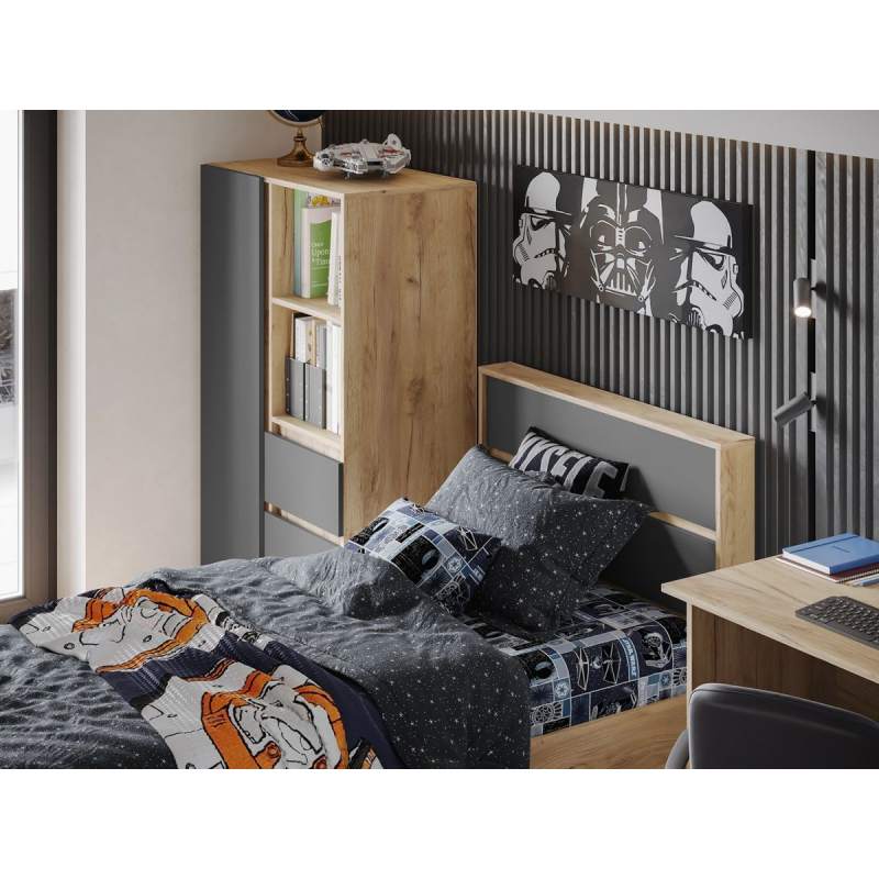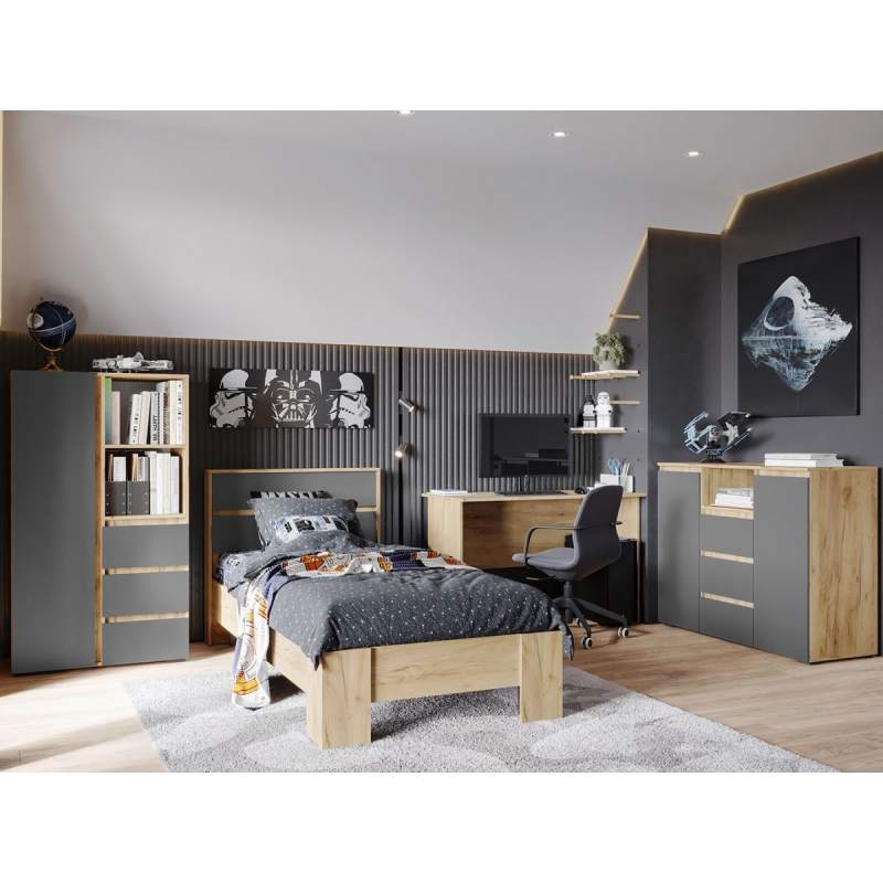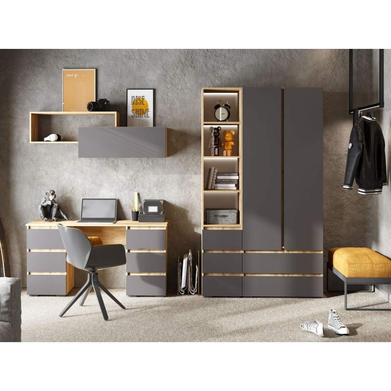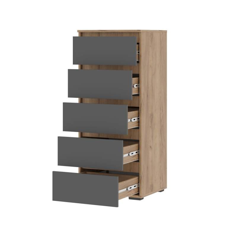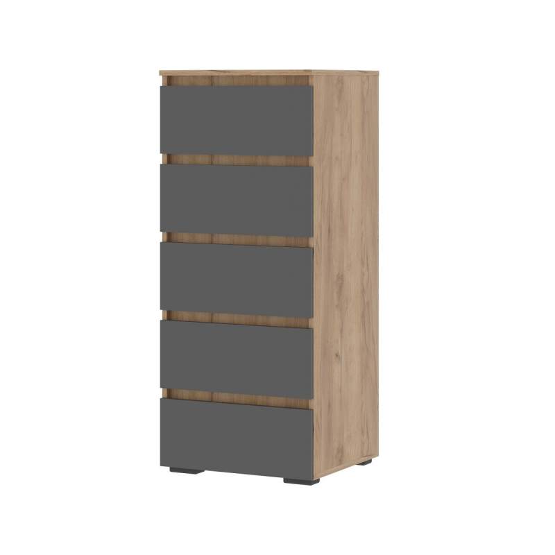 Комод «Хелен» КМ-03 5 ящиков, графит/дуб крафт золотой