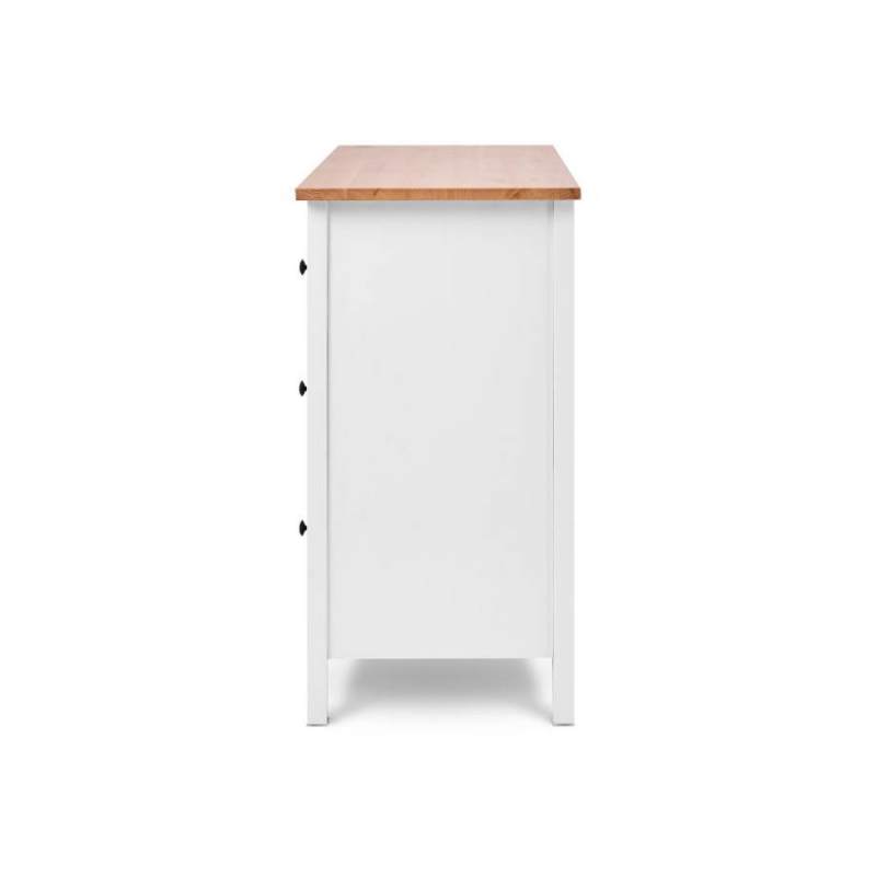 Комод выполнен из массива сосны, который ценится за свою прочность, долговечность и экологичность