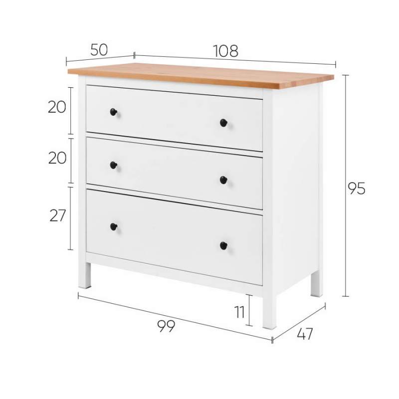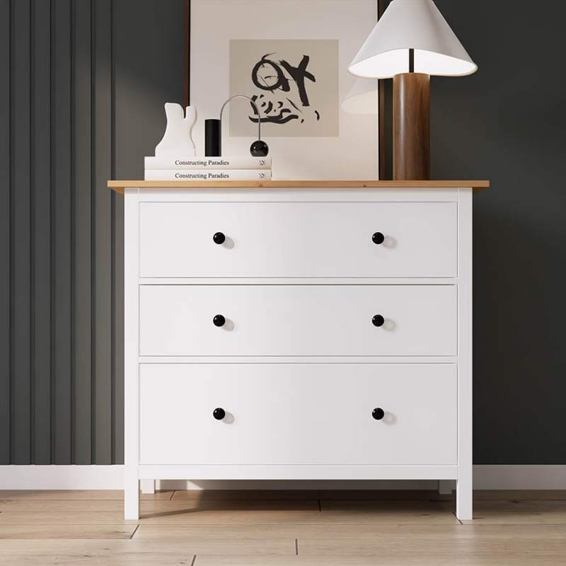 Комод КЫМОР 3 ящика Белый/Светло-коричневый