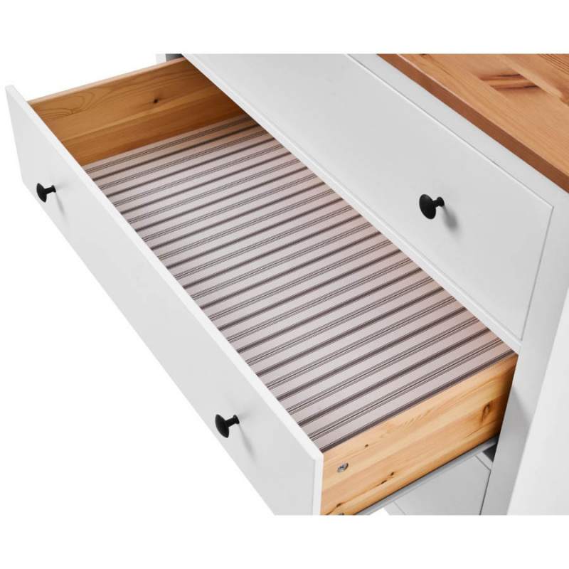В комоде предусмотрено три ящика на роликовых направляющих, которые изнутри не покрашены, как основная часть, что придает им естественный вид.