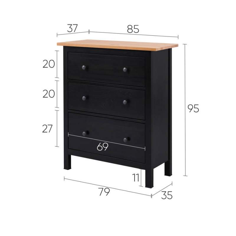 Комод КЫМОР 3 ящика МИНИ Черный/Светло-коричневый