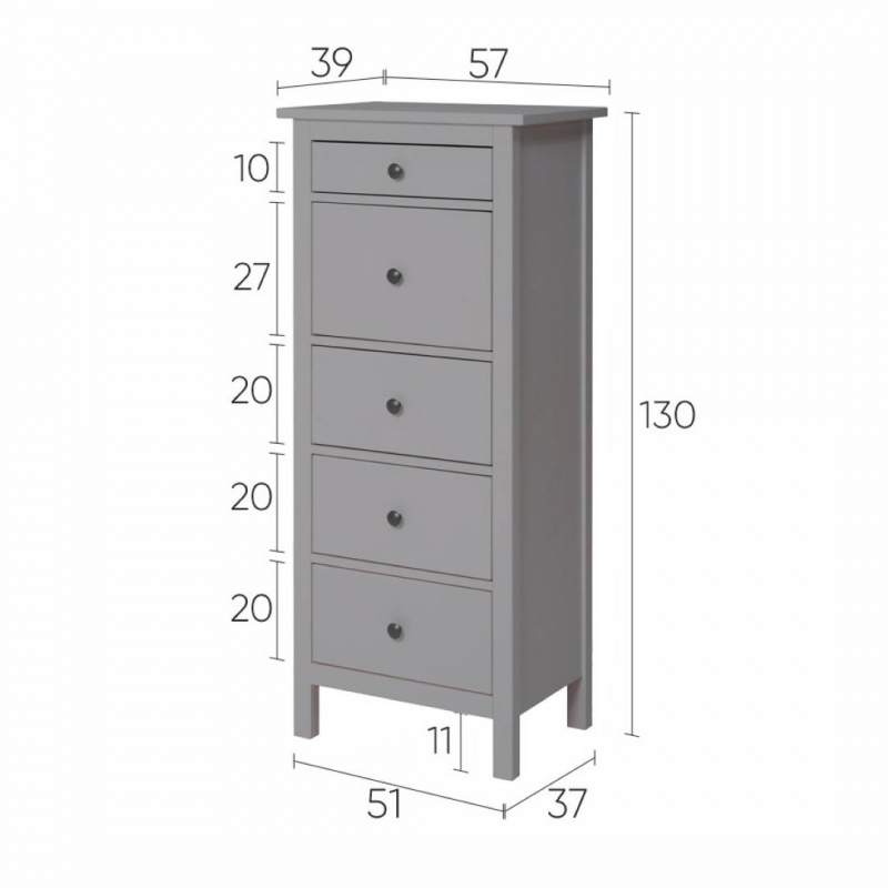 Комод КЫМОР 5 ящиков Серый