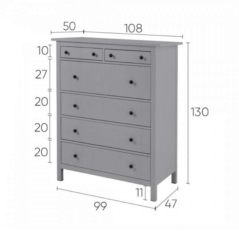 Комод КЫМОР 6 ящиков Серый