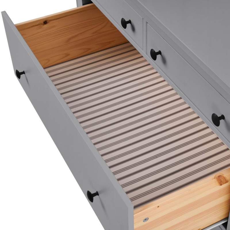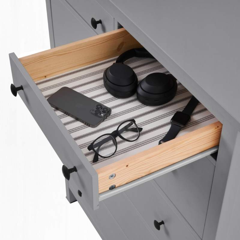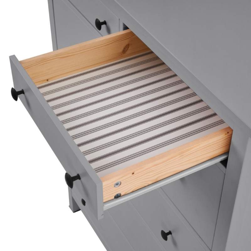 В комоде предусмотрено шесть ящиков на роликовых направляющих, которые изнутри не покрашены, как основная часть, что придает им естественный вид.