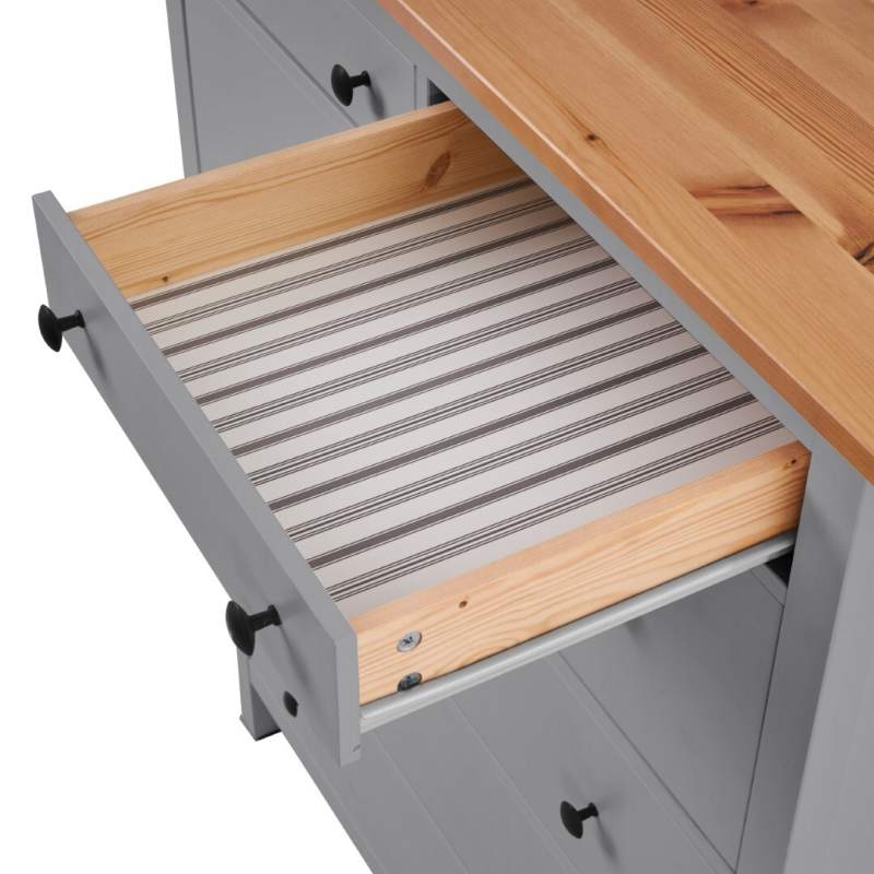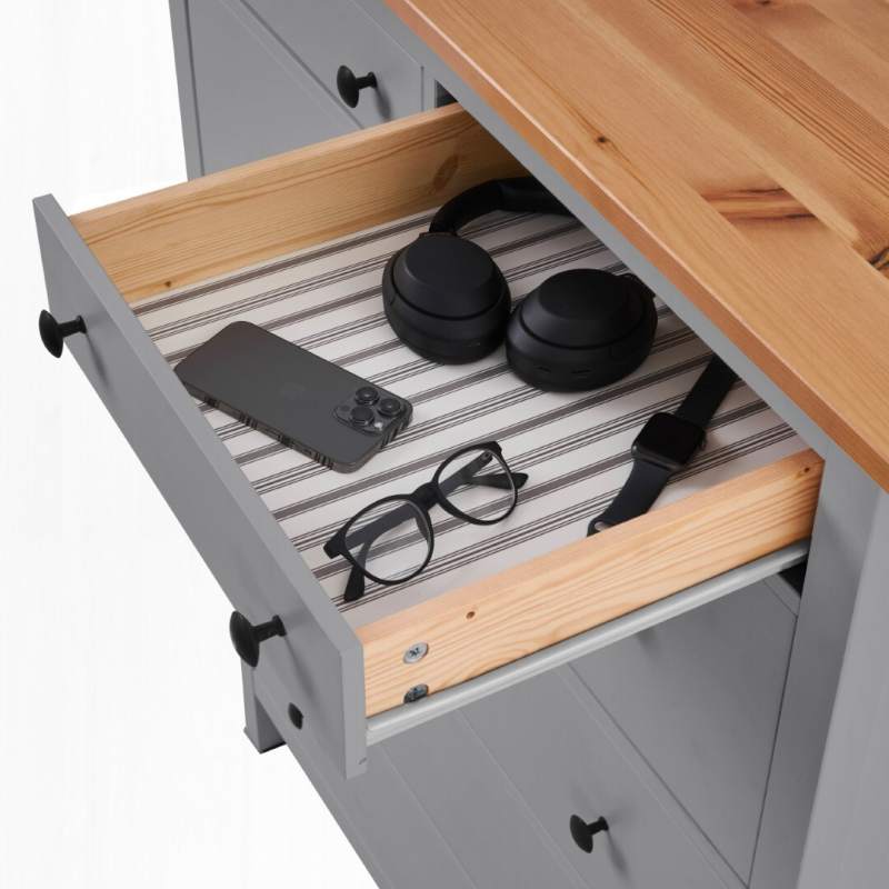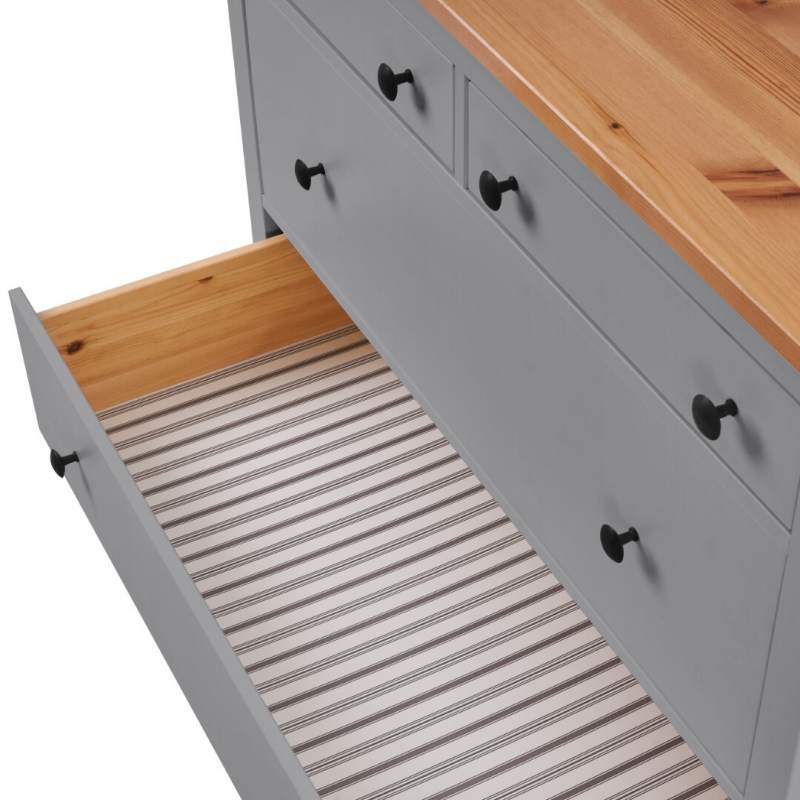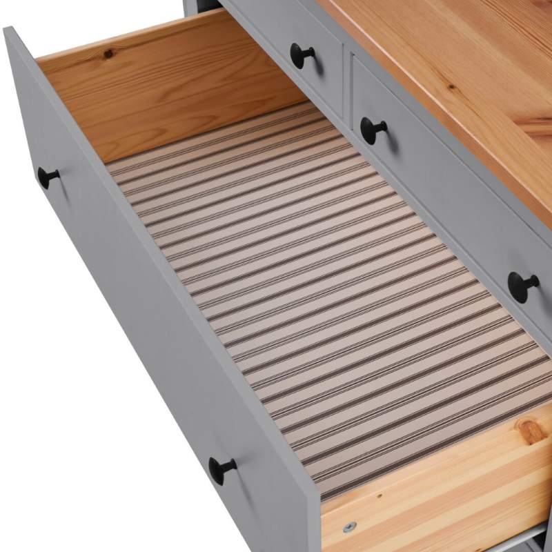 В комоде предусмотрено шесть ящиков на роликовых направляющих, которые изнутри не покрашены, как основная часть, что придает им естественный вид.