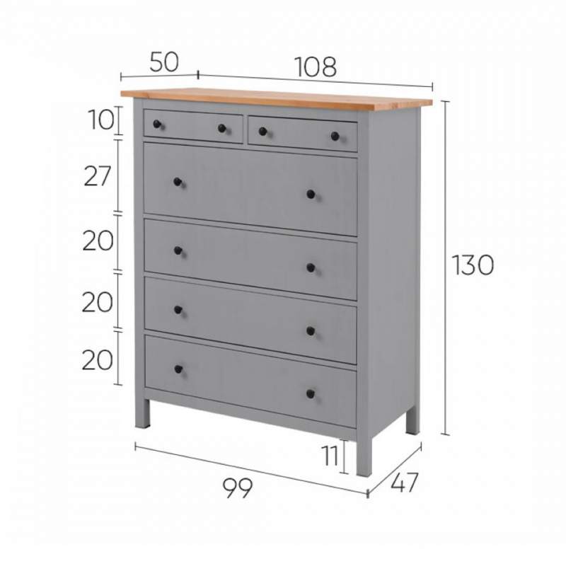Комод КЫМОР 6 ящиков Серый/Светло-коричневый
