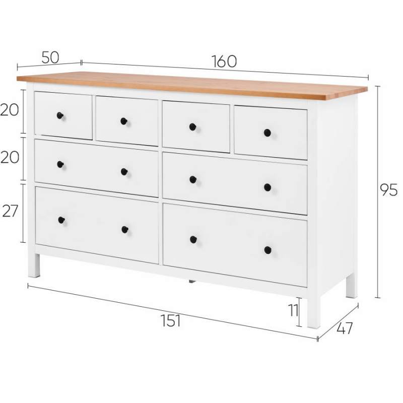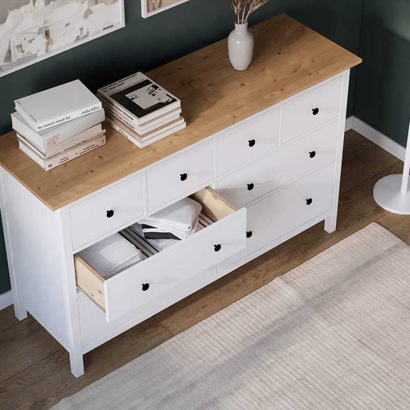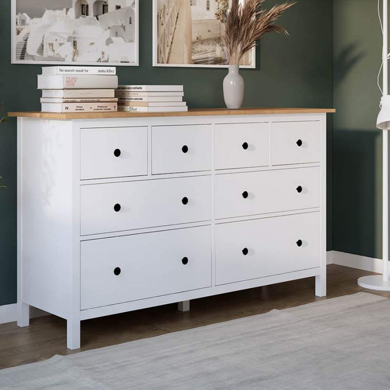 Комод КЫМОР 8 ящиков Белый/Светло-коричневый