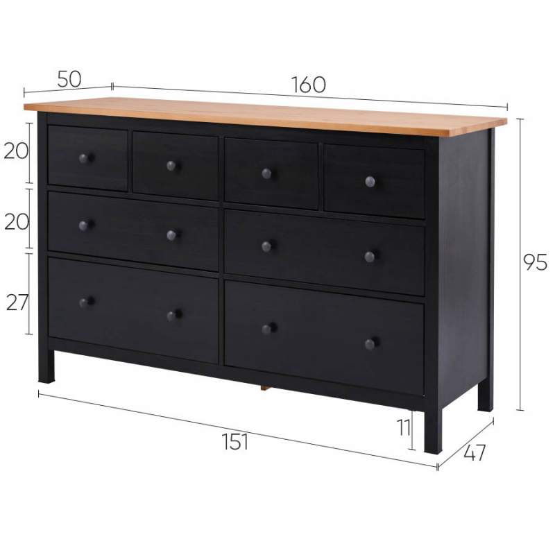 Комод КЫМОР 8 ящиков Черный/Светло-коричневый