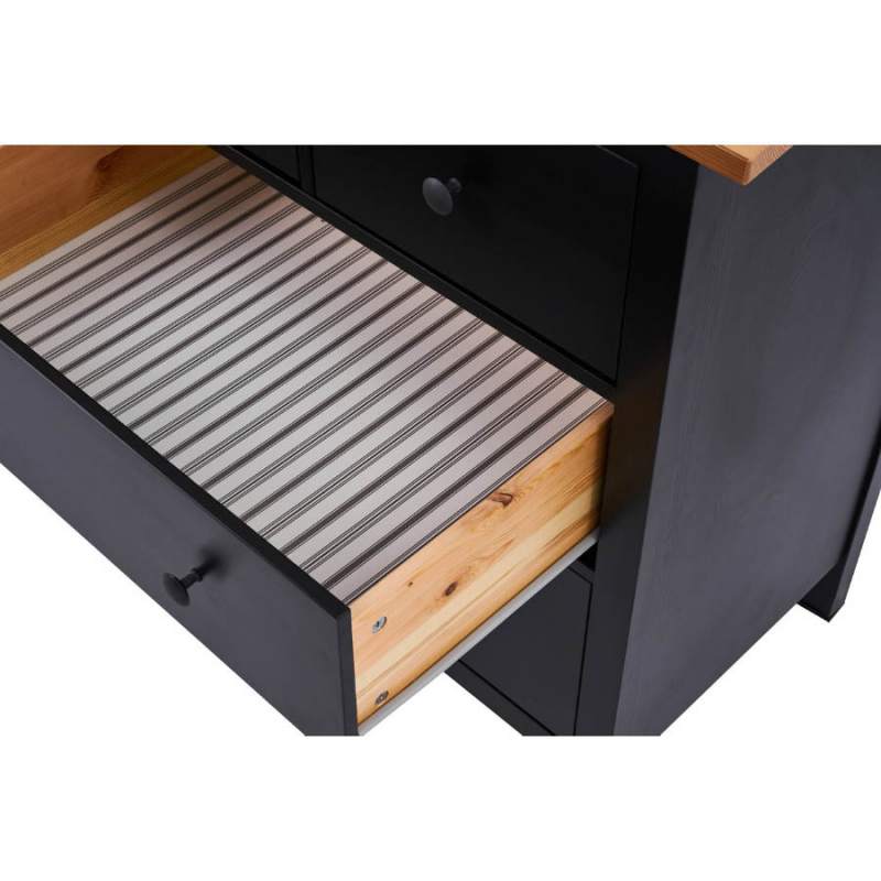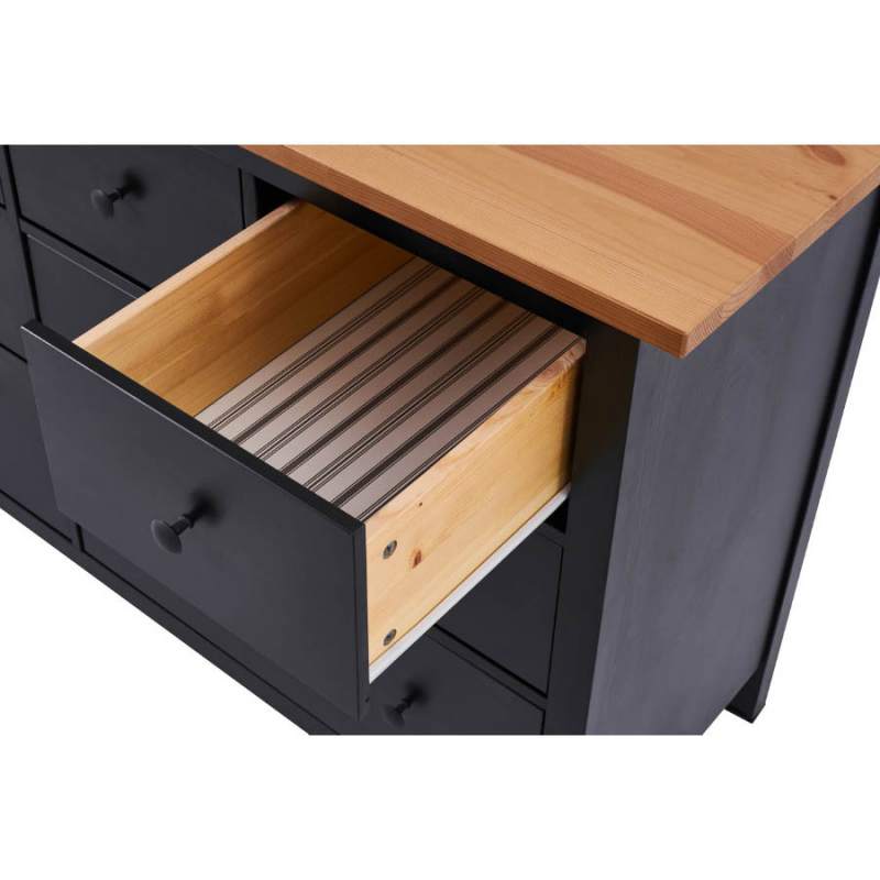 В комоде предусмотрено восемь ящиков на роликовых направляющих, которые изнутри не покрашены, как основная часть, что придает им естественный вид.