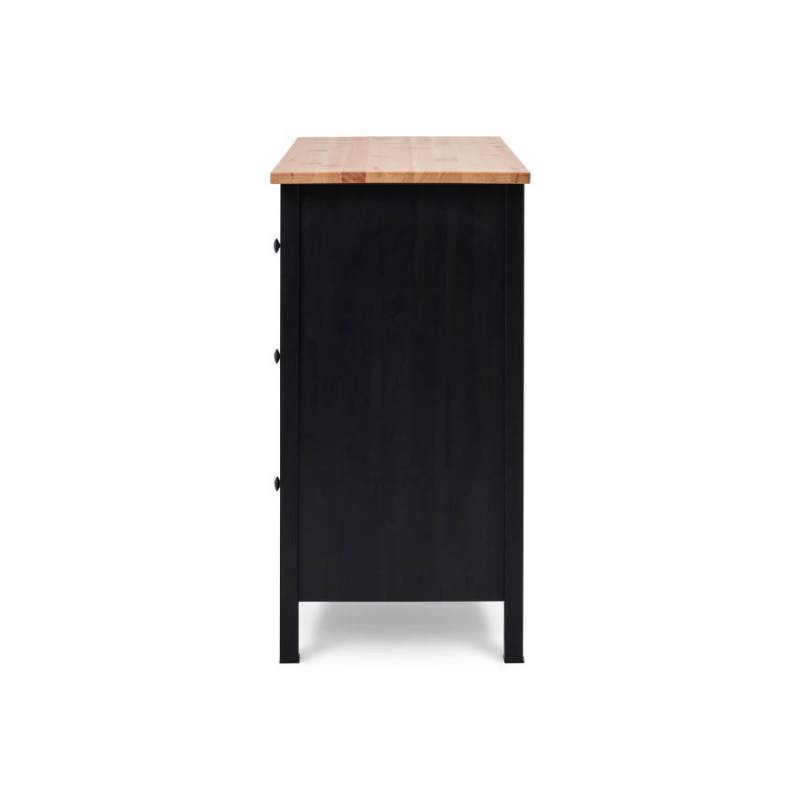Комод выполнен из массива сосны, который ценится за свою прочность, долговечность и экологичность
