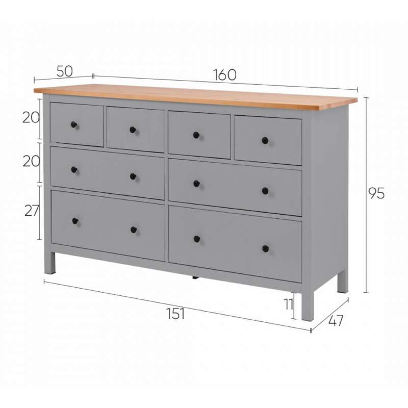 Комод КЫМОР 8 ящиков Серый/Светло-коричневый
