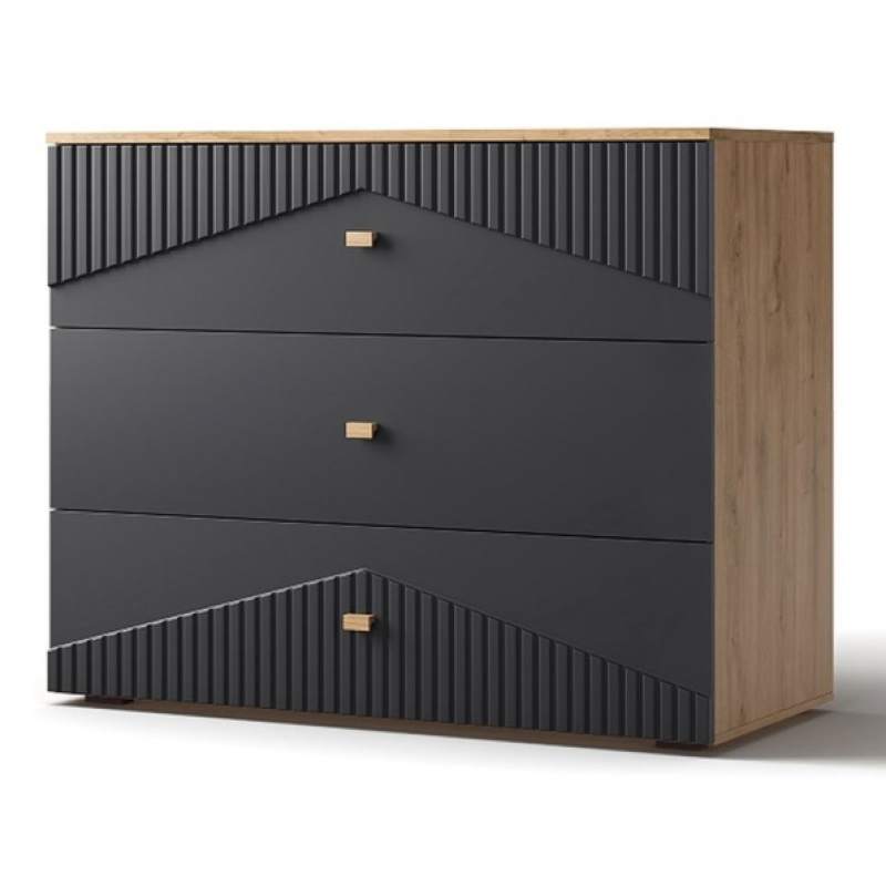 Комод «Оливия» 3Я КМК 0971.19, дуб наварра/шагрень черная