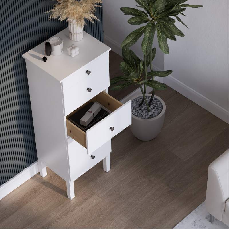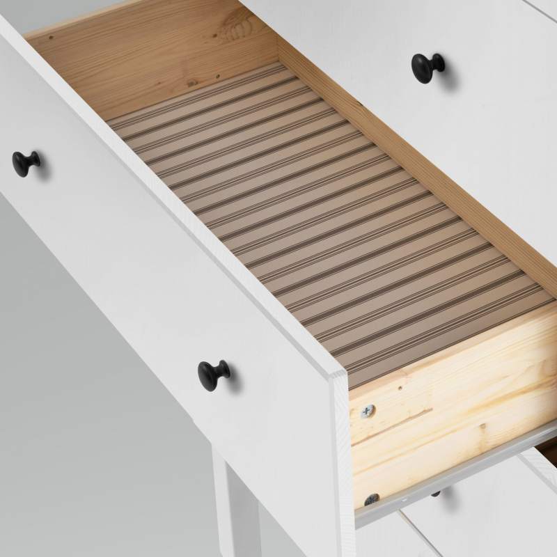 Столешница толщиной 18 мм выдерживает нагрузку до 10 кг, что позволяет не только использовать комод для хранения, но и разместить на нём декоративные элементы или аксессуары.