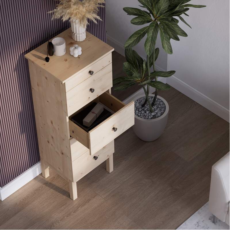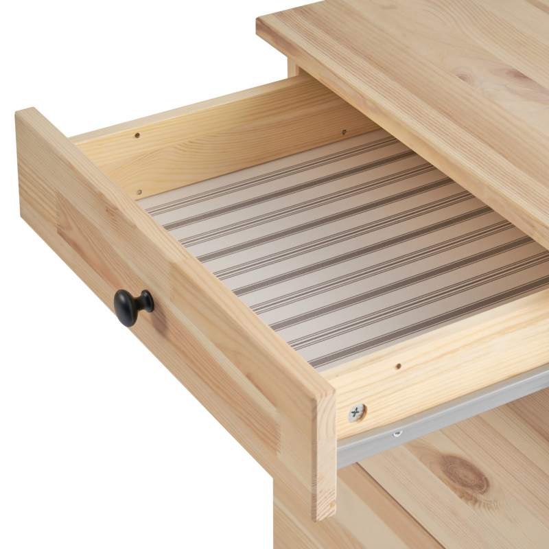 Столешница толщиной 18 мм выдерживает нагрузку до 10 кг, что позволяет не только использовать комод для хранения, но и разместить на нём декоративные элементы или аксессуары.