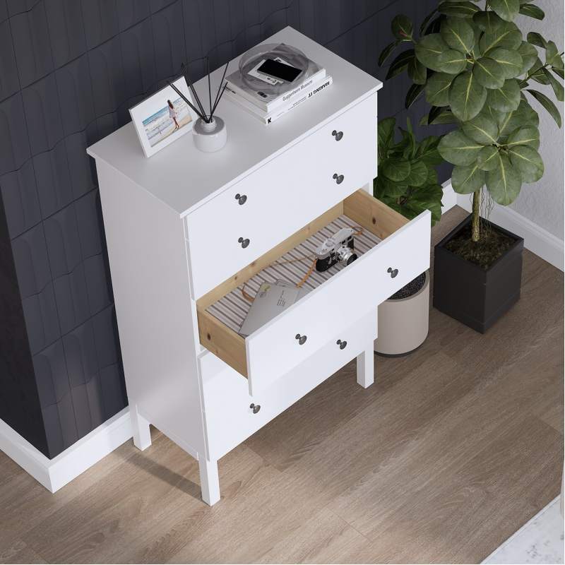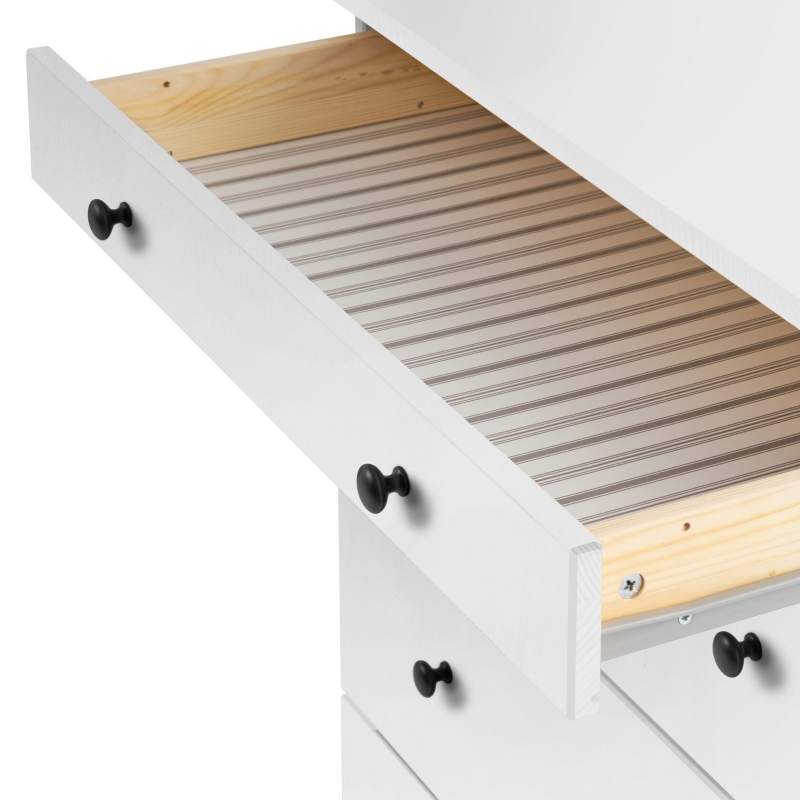 Столешница толщиной 18 мм выдерживает нагрузку до 10 кг, что позволяет не только использовать комод для хранения, но и разместить на нём декоративные элементы или аксессуары.