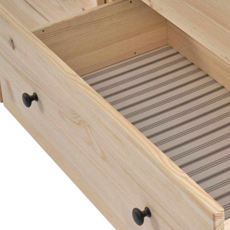 Столешница толщиной 18 мм выдерживает нагрузку до 10 кг, что позволяет не только использовать комод для хранения, но и разместить на нём декоративные элементы или аксессуары.