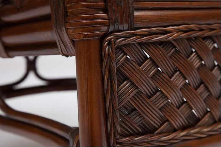 Великолепный комплект для отдыха «Андреа» прекрасно впишется в интерьер загородного дома, летней веранды или сада. Компактный овальный столик со стеклянной столешницей, уютный 3х-местный диван и два высоких кресла в колониальном стиле изготовлены вручную из натурального ротанга. В дизайне используется несколько видов традиционного индонезийского плетения. Изысканная отделка в цвете «античный орех» выполнена методом тонирования и нанесения темной патины. Финишное покрытие — прочный матовый лак, устойчивый к УФ-излучению. Для большего удобства мебель комплектуется большими декоративными подушками кремового цвета.