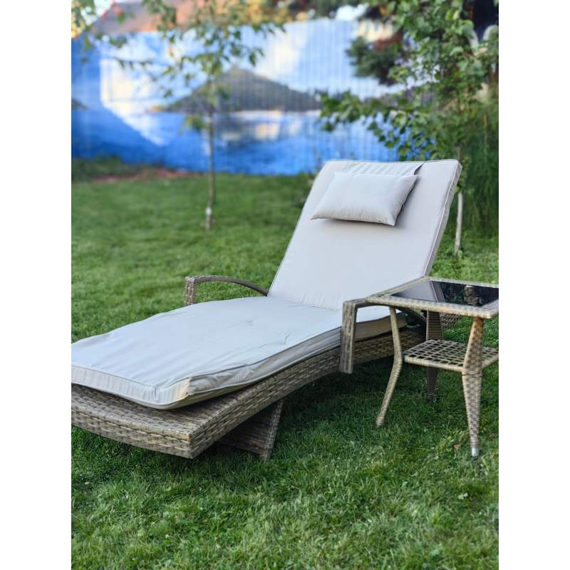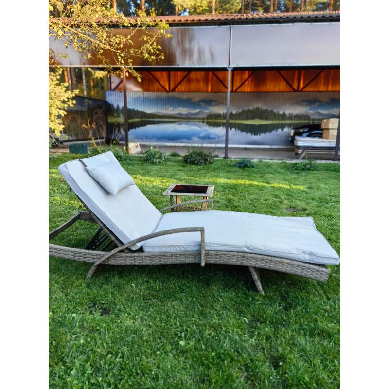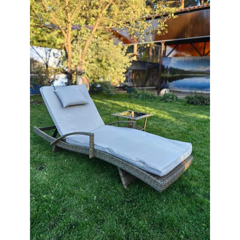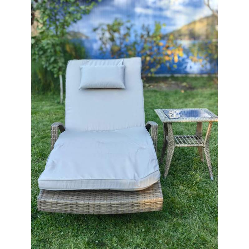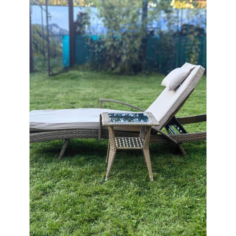 Комплект мебели из искусственного ротанга МАРА “MARA” Greige , шезлонг с подлокотниками и столик