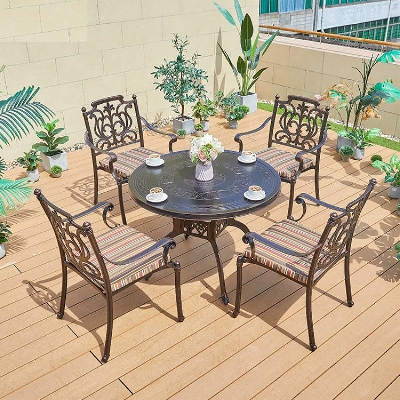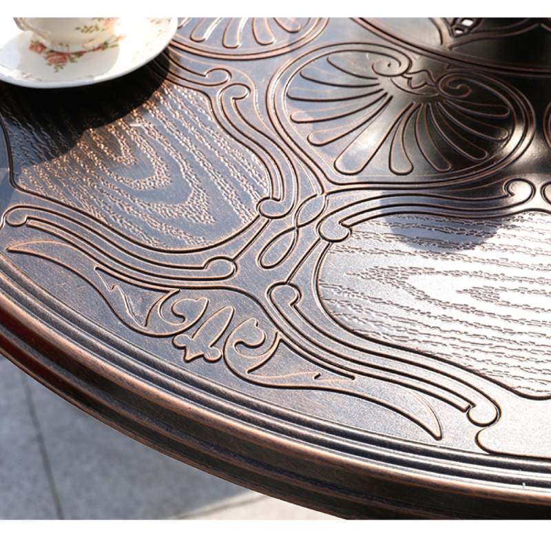 Изящный круглый стол с красивым орнаментом на 4 персоны из литого алюминия.