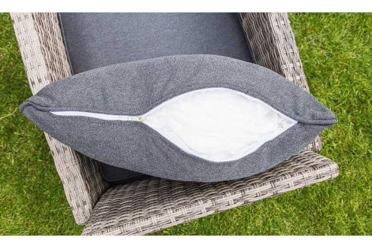 При всем этом мебель имеет небольшой вес, что позволяет с легкостью перемещать ее с места на место. Комплект дополнен мягкими подушками с чехлами из водоотталкивающей ткани.