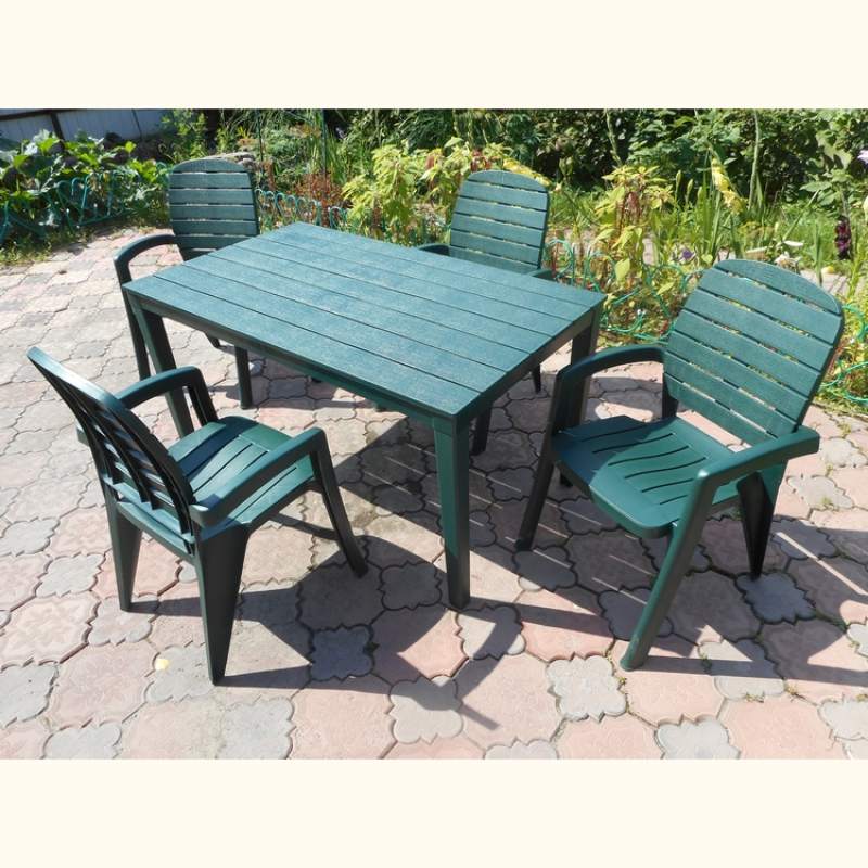 Комплект пластиковой мебели стол зеленый Суматра + 4 зеленых кресла Ибица