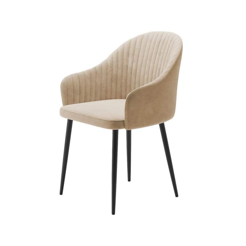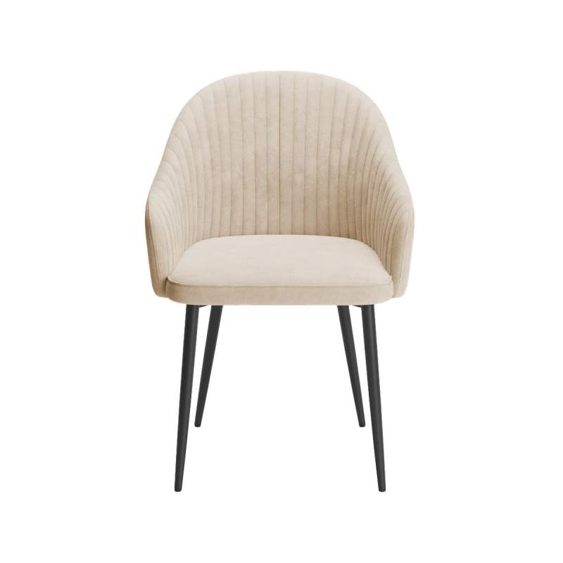 Комплект кухонных стульев «Шелл», для обустройства помещений для кухни, для столовой, для гостиной. Полумягкие кресла, изготовленны на металлокаркасе, с дизайнерской прошивкой сиденья и наполнением ППУ. Мягкие элементы обеденных стульев исполнены в обивке из микровелюра. Опора металлическая - крашенная черная или белая конусированная труба 30x18 мм, толщина в сечении трубы 1,2 мм.