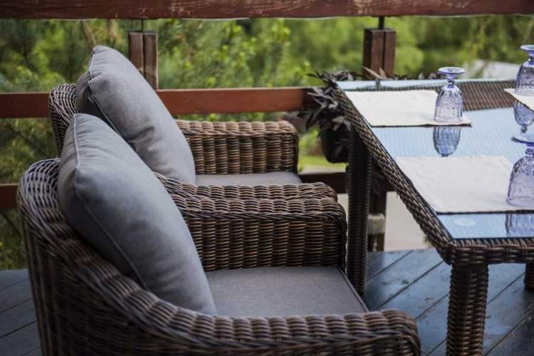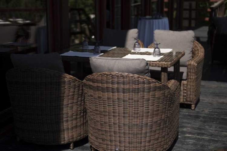 Кресло «Кон Панна» входит в лаунж-зону, состоящую из двухместного дивана, двух кресел и журнального столика. Но также может использоваться в качестве отдельного предмета. Размер модели – 780×800×800мм. В качестве основы служит алюминиевый каркас, который оплетен круглым искусственным ротангом коричневого оттенка. У кресла есть мягкие подушки, выполненые в темно-сером цвете. Они сделаны из прочного полиэстера с плотностью 230гр/м2. Ткань имеет влагоотталкивающую пропитку, которая защищает ее от сильного намокания.