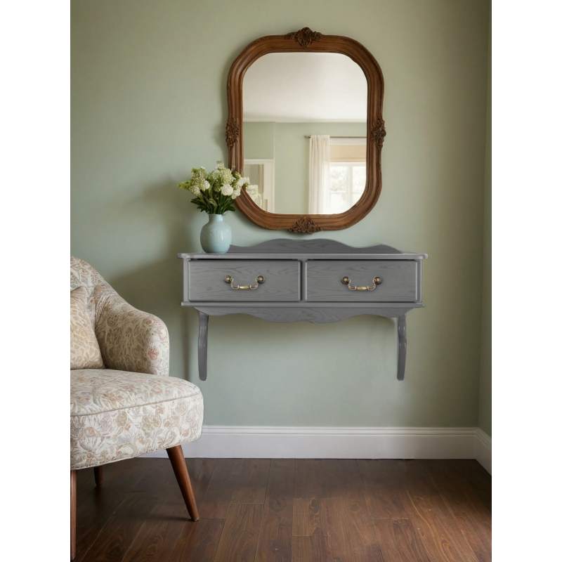 Изысканная консоль Берже 20 сочетает в себе изящество и функциональность. Она идеально впишется в классический интерьер квартиры или дома. Деревянная модель выполнена из МДФ, что обеспечивает прочность и долгий срок службы. Все детали покрыты защитной эмалью с теснением, передающим текстуру дерева. Два вместительных ящика станут отличным местом для хранения косметики, аксессуаров и других мелочей.