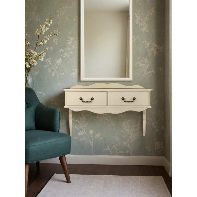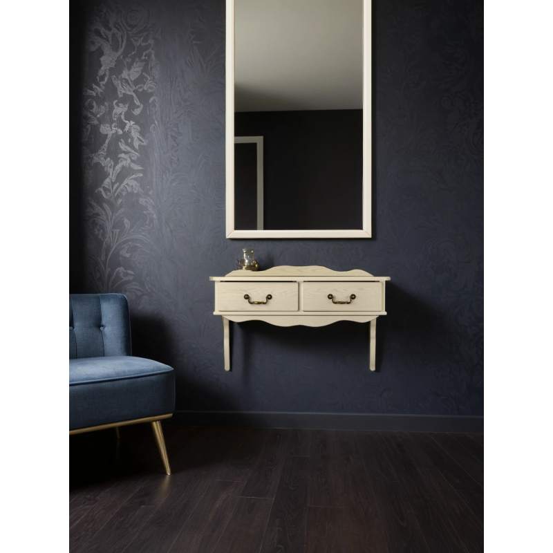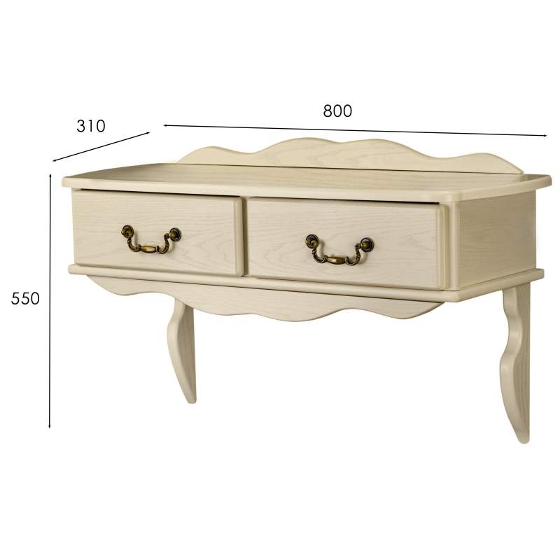 Изысканная консоль Берже 20 сочетает в себе изящество и функциональность. Она идеально впишется в классический интерьер квартиры или дома. Деревянная модель выполнена из МДФ, что обеспечивает прочность и долгий срок службы. Все детали покрыты защитной эмалью с теснением, передающим текстуру дерева. Два вместительных ящика станут отличным местом для хранения косметики, аксессуаров и других мелочей.