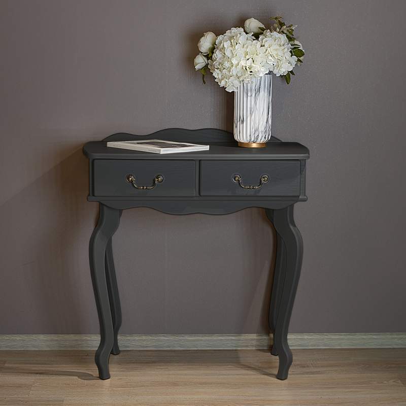 Изящная консоль Берже 21 отлично дополнит классический интерьер квартиры или дома. Модель на ножках удобно перемещать между комнатами. Деревянная модель выполнена из МДФ, что обеспечивает прочность и долгий срок службы. Все детали покрыты защитной эмалью с теснением, передающим текстуру дерева. Консоль обладает двумя вместительными ящиками, в которых легко поместится аксессуары и другие мелочи.