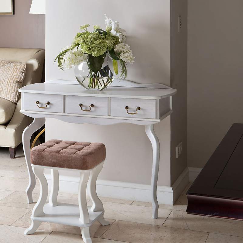 В сочетании с банкеткой и зеркалом из серии "Берже" создаст приватный женский туалетный уголок; отлично смотрится как подставка под большую вазу с цветами, статуэтку, или комнатное растение в сочетании с зеркалом;