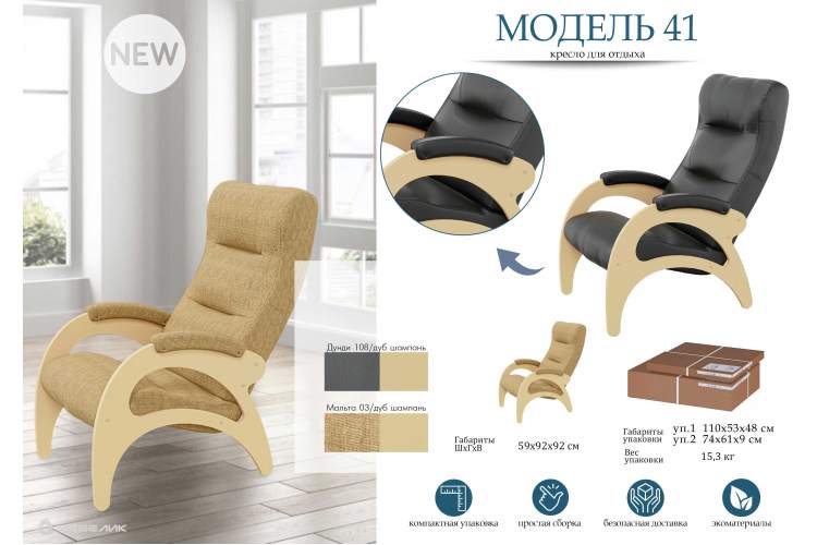 Кресло для отдыха Модель 41 прекрасно подойдёт как для дома или дачи, так и для офиса.