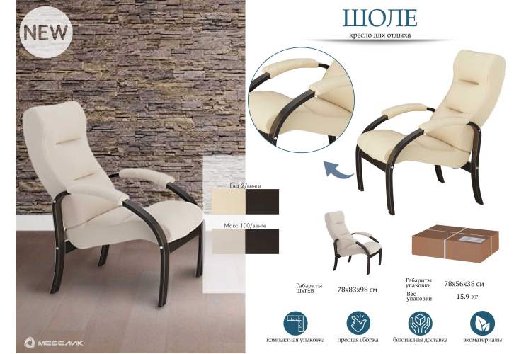 Приобрести Кресло для отдыха Шоле, Ткань Макс 100, каркас венге в интернет-магазине недорого по цене 14891р.. Нажав кнопку ХОЧУ СКИДКУ - оператор предложит лучшую цену если это возможно. Доставка в Москве и области со сборкой сразу. Отправляем в регионы России. Для заказа Кресло для отдыха Шоле, Ткань Макс 100, каркас венге 132751-09 008452 звоните по телефону: +7(495)642-45-92. Посмотреть Кресло для отдыха Шоле, Ткань Макс 100, каркас венге от mebelik можно в каталоге.