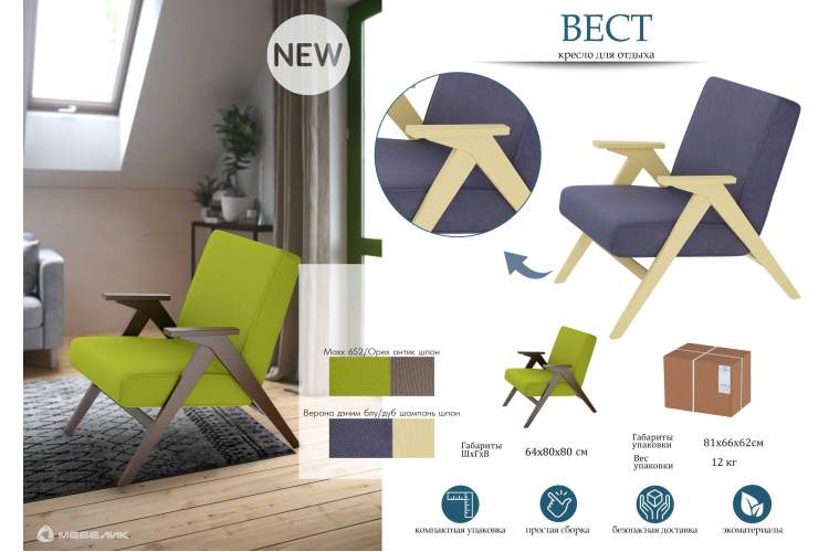 Кресло для отдыха Вест выполнено в ретро стиле.