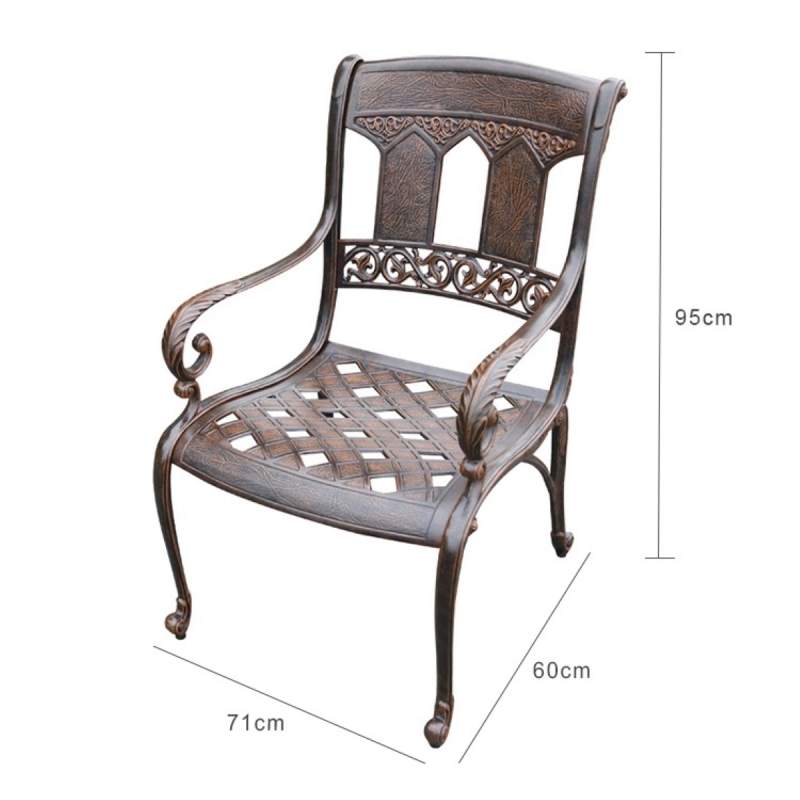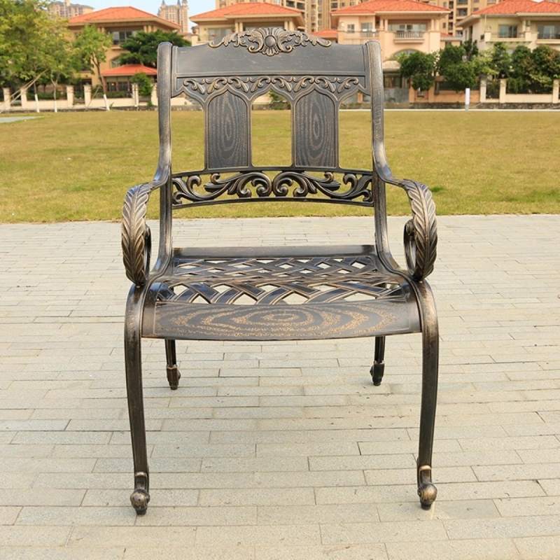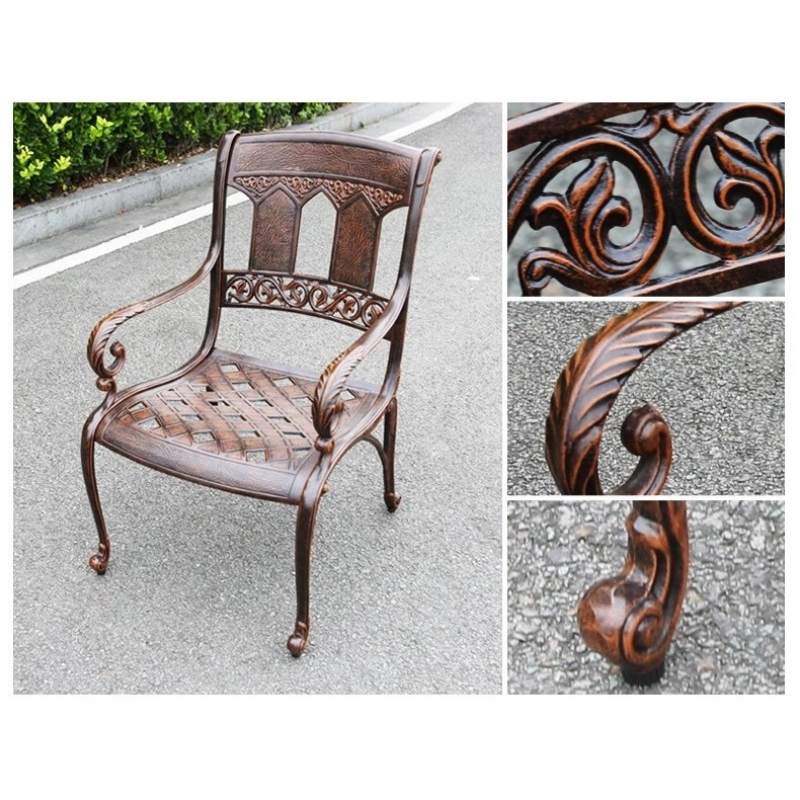 Кресло из литого алюминия прекрасно подойдет для дома и сада, кафе и ресторана. Эта литая мебель выполнена в стиле кованой, но намного легче и удобно в эксплуатации. Немаловажным фактом является и то, что литой алюминий не ржавеет в отличии от стали или чугуна.