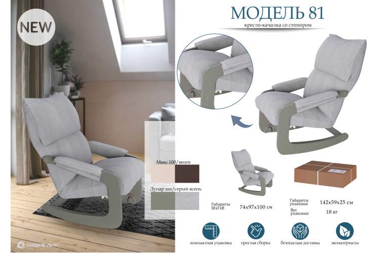 Кресло-качалка Модель 81 – универсальное место для отдыха. Из кресла-качалки оно быстро трансформируется в неподвижное кресло для отдыха.
