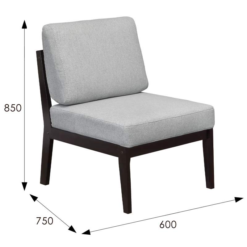 Кресло Массив мягкое ткань серый, каркас венге
